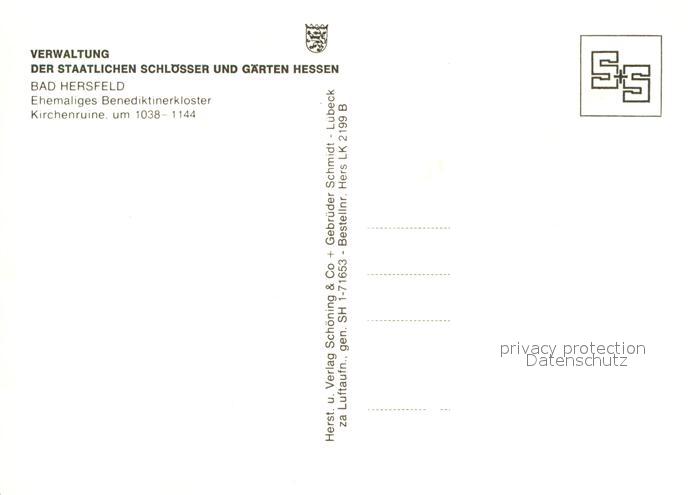 72966391 Bad Hersfeld Kirchenruine Fliegeraufnahme postalisch nicht gelaufen Erhaltung siehe scans [NatalD47] KatCode: 11110006632002