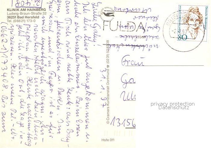 73102080 alte Postkarte Bad Hersfeld Klinik am Hainberg Zimmer Foyer Hallenbad postalisch gelaufen Erhaltung siehe scans [WerneD78] KatCode: 11110006632002