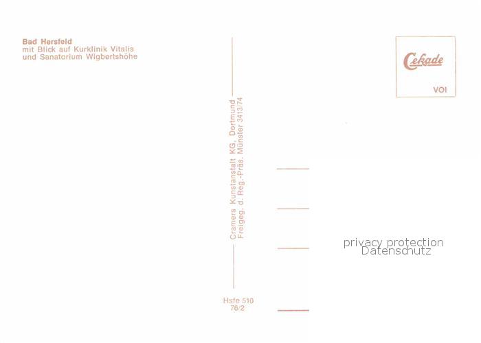 72909126 Bad Hersfeld Kurklinik Vitalis Sanatorium Wigbertshoehe Fliegeraufnahme postalisch nicht gelaufen Erhaltung siehe scans [FriedD77] KatCode: 11110006632002
