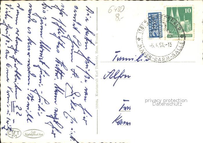 72126243 alte Postkarte Bad Hersfeld Kurpark Teich Schwaene Wigbertshoehe postalisch gelaufen Erhaltung siehe scans KatCode: 11110006632002