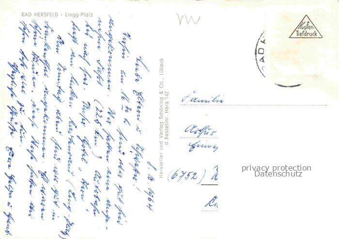 74104172 alte Postkarte BAD HERSFELD Lingg-Platz Altstadt Fachwerkhaeuser postalisch gelaufen Erhaltung siehe scans [FriedD77] KatCode: 11110006632002