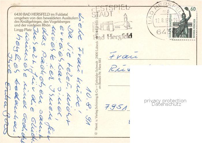73774824 alte Postkarte Bad Hersfeld Lingg Platz postalisch gelaufen Erhaltung siehe scans [WerneD78] KatCode: 11110006632002