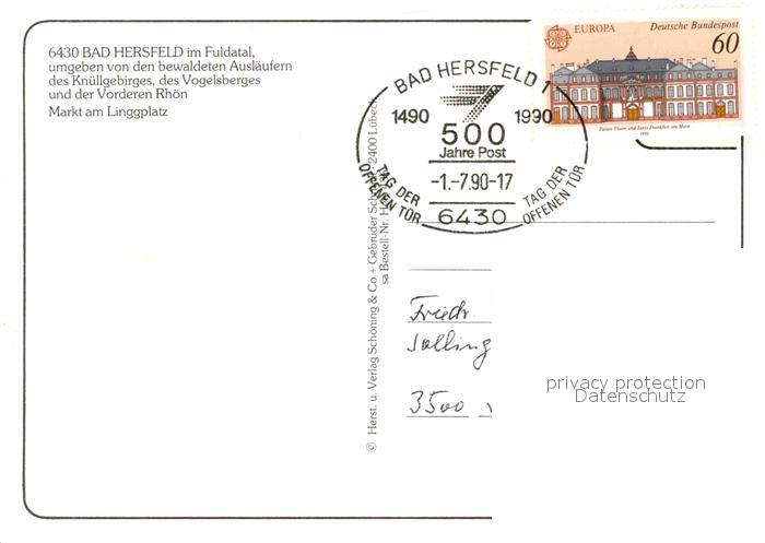 72679737 alte Postkarte Bad Hersfeld Markt am Linggplatz Fachwerkhaeuser postalisch gelaufen Erhaltung siehe scans [FriedD77] KatCode: 11110006632002