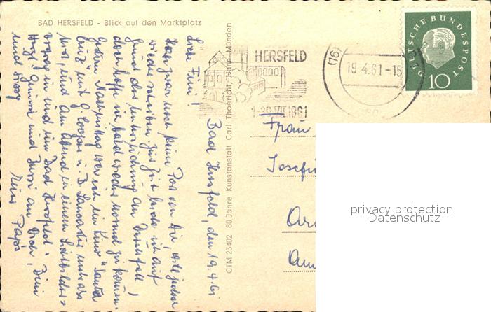 71917295 alte Postkarte Bad Hersfeld Marktplatz postalisch gelaufen Erhaltung siehe scans KatCode: 11110006632002