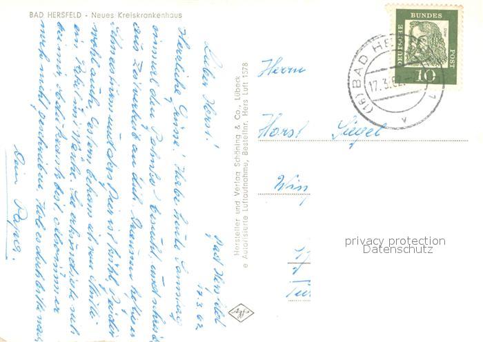 33664339 alte Postkarte Bad Hersfeld Neues Krankenhaus Fliegeraufnahme postalisch gelaufen Erhaltung siehe scans [FriedD77] KatCode: 11110006632002