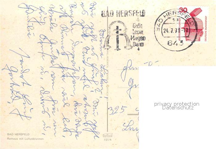 72661397 alte Postkarte Bad Hersfeld Rathaus Lullusbrunnen postalisch gelaufen Erhaltung siehe scans [AndreD76] KatCode: 11110006632002