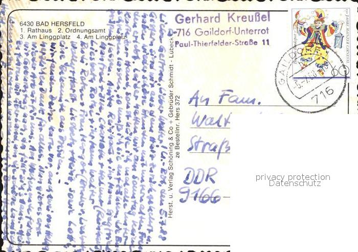 72450618 alte Postkarte Bad Hersfeld Rathaus Ordnungsamt Linggplatz postalisch gelaufen Erhaltung siehe scans KatCode: 11110006632002