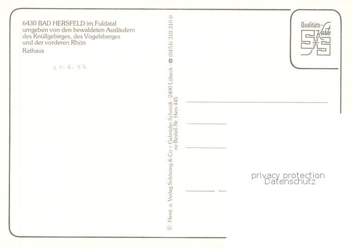 73268502 Bad Hersfeld Rathaus postalisch nicht gelaufen Erhaltung siehe scans [PaolaD17] KatCode: 11110006632002