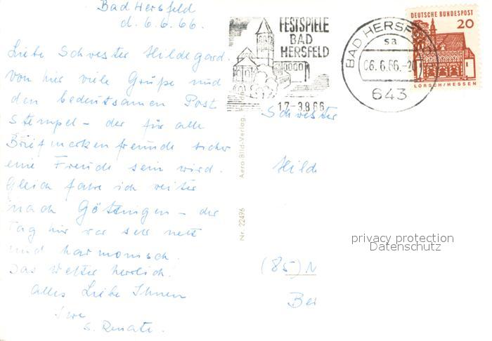 73687325 alte Postkarte Bad Hersfeld Ruine der Stiftskirche Fliegeraufnahme postalisch gelaufen Erhaltung siehe scans [WerneD78] KatCode: 11110006632002