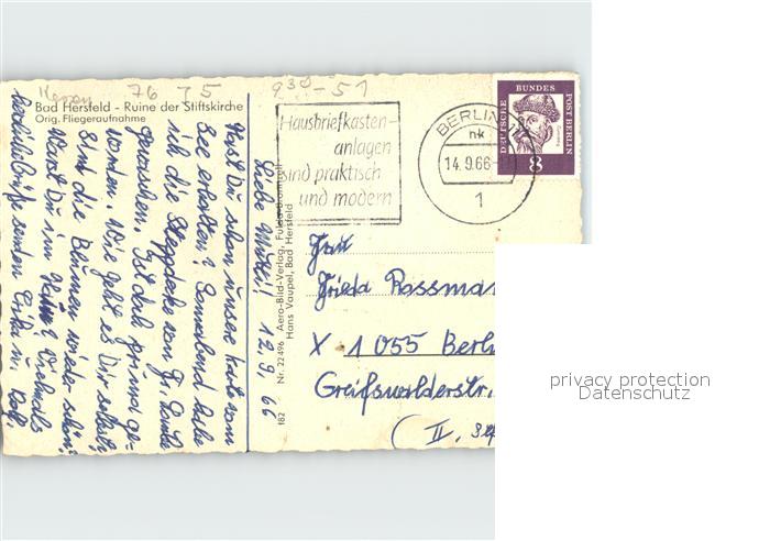 72255099 alte Postkarte Bad Hersfeld Ruine der Stiftskirche Fliegeraufnahme postalisch gelaufen Erhaltung siehe scans KatCode: 11110006632002