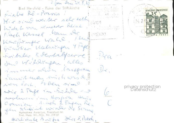 72135863 alte Postkarte Bad Hersfeld Ruine der Stiftskirche Fliegeraufnahme postalisch gelaufen Erhaltung siehe scans KatCode: 11110006632002