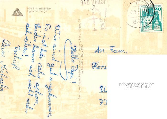 73009256 alte Postkarte Bad Hersfeld Stiftsruhe Jugendherberge Speisesaal Stiftskirche Lingg Platz Rathaus postalisch gelaufen Erhaltung siehe scans [WerneD78] KatCode: 11110006632002