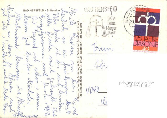 72277220 alte Postkarte Bad Hersfeld Stiftsruine postalisch gelaufen Erhaltung siehe scans KatCode: 11110006632002