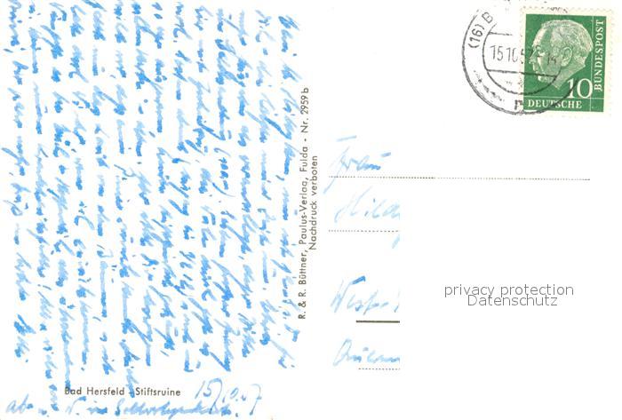 73103160 alte Postkarte Bad Hersfeld Stiftsruine postalisch gelaufen Erhaltung siehe scans [KathaD81] KatCode: 11110006632002