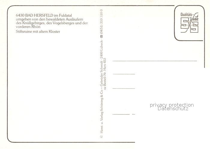 73212916 Bad Hersfeld Stiftsruine mit altem Kloster postalisch nicht gelaufen Erhaltung siehe scans [WerneD78] KatCode: 11110006632002