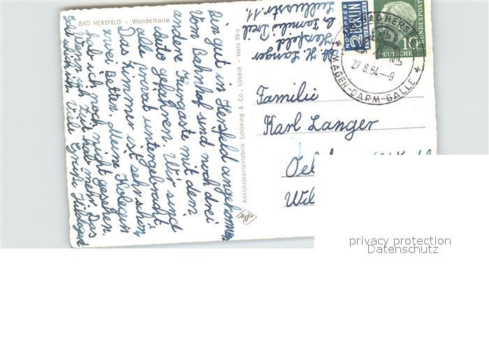 alte Postkarte Bad Hersfeld Wandelhalle postalisch gelaufen Erhaltung siehe scans
