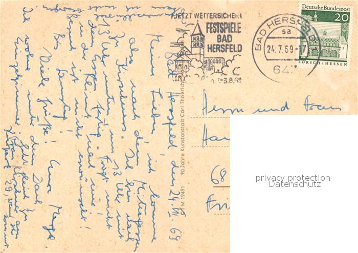 73253860 alte Postkarte Bad Hersfeld Wandelhalle Marktplatz Stiftsruine Stiftsruine postalisch gelaufen Erhaltung siehe scans [KathaD81] KatCode: 11110006632002