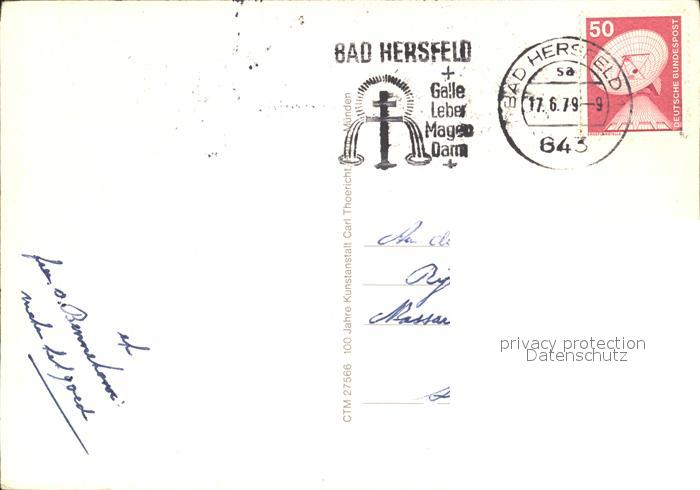 72274929 alte Postkarte Bad Hersfeld Wandelhalle Rathaus Im Kurpark Stiftskirche postalisch gelaufen Erhaltung siehe scans KatCode: 11110006632002