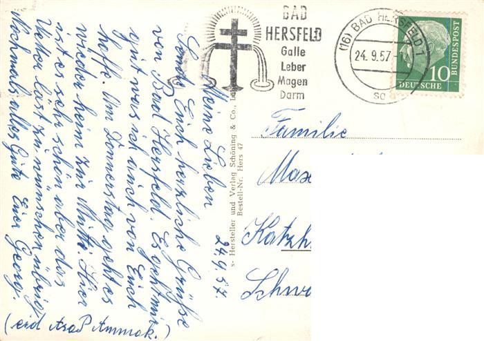 73900734 alte Postkarte Bad Hersfeld Wandelhalle Rathaus Stadtkirche Kurhotel Linggplatz Panorama postalisch gelaufen Erhaltung siehe scans [WerneD78] KatCode: 11110006632002