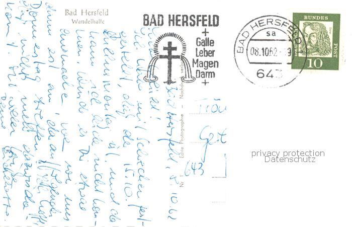 73804076 alte Postkarte Bad Hersfeld Wandelhalle postalisch gelaufen Erhaltung siehe scans [WerneD78] KatCode: 11110006632002