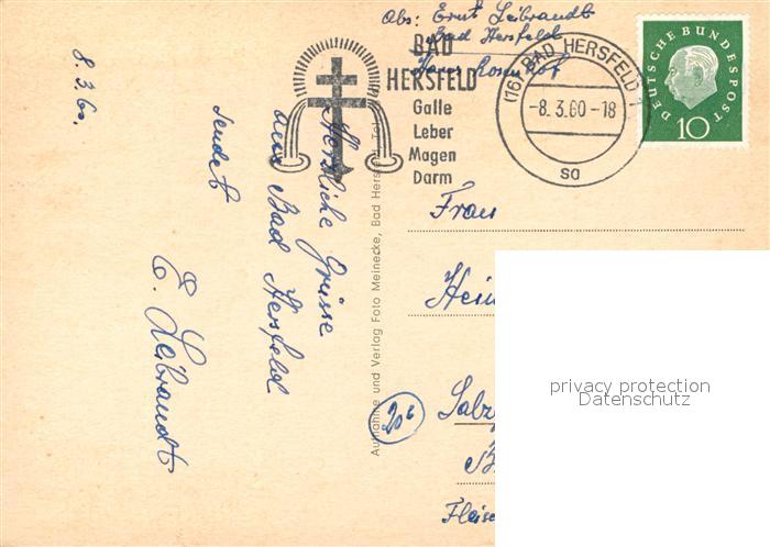 72984097 alte Postkarte Bad Hersfeld Weinstrasse Stadtkirche aeltestes Haus um 1450 Obere Frauenstrasse Linggplatz und Markt postalisch gelaufen Erhaltung siehe scans [WerneD78] KatCode: 11110006632002
