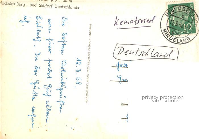 73646511 alte Postkarte Bad Hindelang Alpgasthof Kematsried Allgaeuer Alpen postalisch gelaufen Erhaltung siehe scans [FriedD77] KatCode: 11110009780123