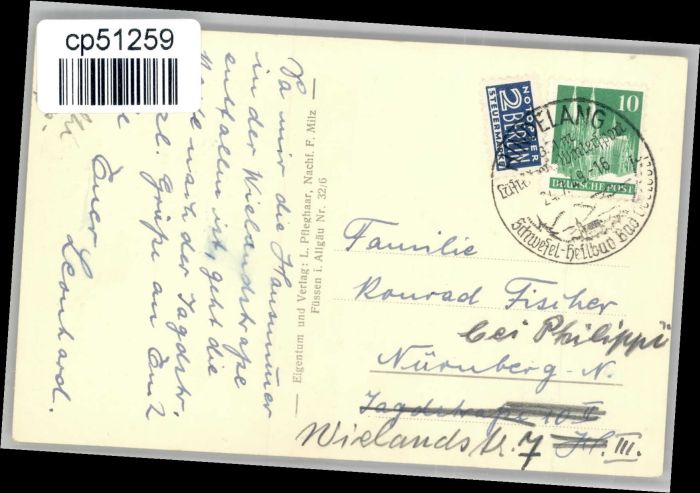 70698778 alte Postkarte Bad Hindelang [Stempelabschlag] Gasthaus Horn am Weg Rettenschwangertal postalisch gelaufen KatCode: 11110009780123