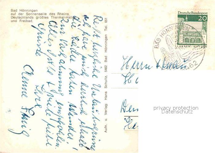 72667994 alte Postkarte Bad Hoenningen Kirche Rheinpartie Kurmittelhaus postalisch gelaufen Erhaltung siehe scans [WerneD78] KatCode: 11110007138004