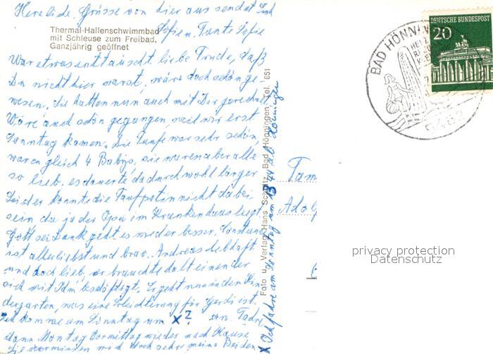 72920350 alte Postkarte Bad Hoenningen Schwimmbad postalisch gelaufen Erhaltung siehe scans [LiesaD40] KatCode: 11110007138004