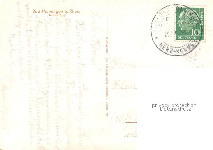 73671539 alte Postkarte Bad Hoenningen Thermalbad am Rhein postalisch gelaufen Erhaltung siehe scans [FriedD77] KatCode: 11110007138004