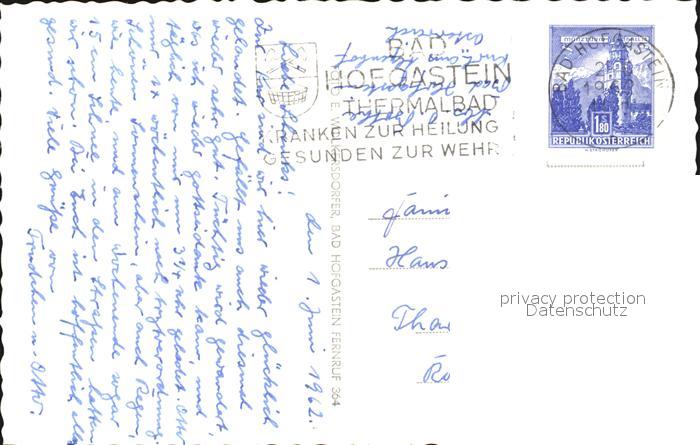 72397186 alte Postkarte Bad Hofgastein postalisch gelaufen Erhaltung siehe scans KatCode: 11390322050402