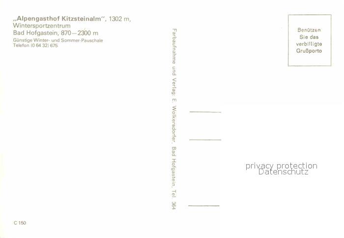 72617713 Bad Hofgastein Alpengasthof Kitzsteinalm postalisch nicht gelaufen Erhaltung siehe scans [NatalD47] KatCode: 11390322050402