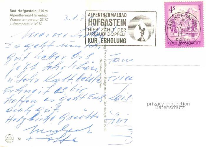 72668630 alte Postkarte Bad Hofgastein Alpenthermal-Hallenbad postalisch gelaufen Erhaltung siehe scans [LiesaD40] KatCode: 11390322050402