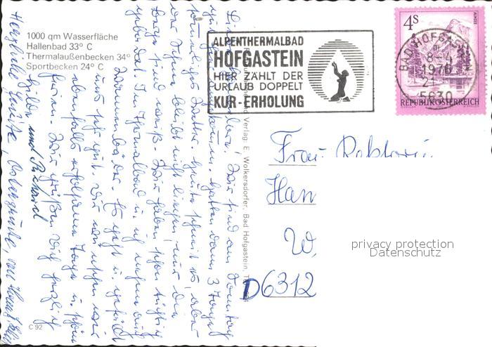 72182601 alte Postkarte Bad Hofgastein Alpenthermal Hallenbad postalisch gelaufen Erhaltung siehe scans KatCode: 11390322050402