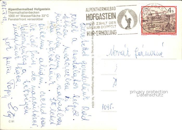 72333802 alte Postkarte Bad Hofgastein Alpenthermalbad postalisch gelaufen Erhaltung siehe scans KatCode: 11390322050402