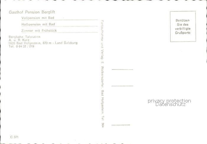 71901802 Bad Hofgastein Bergbahn Talstation Pension Gasthof Berglift postalisch nicht gelaufen Erhaltung siehe scans KatCode: 11390322050402