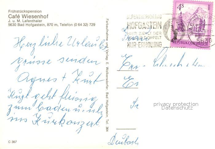 13182270 alte Postkarte Bad Hofgastein Cafe Wiesenhof postalisch gelaufen Erhaltung siehe scans [NatalD47] KatCode: 11390322050402