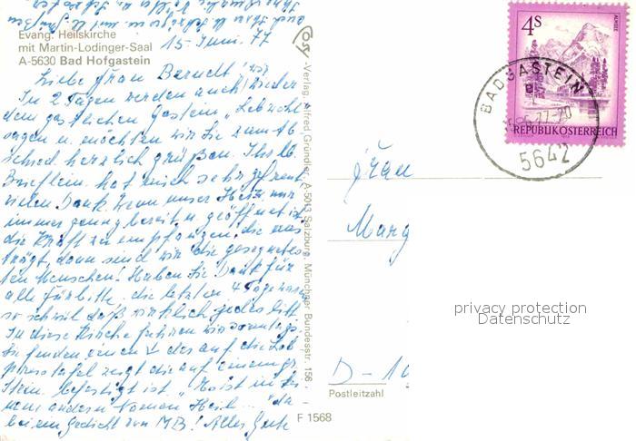 72831953 alte Postkarte Bad Hofgastein Evangelische Kirche postalisch gelaufen Erhaltung siehe scans [FriedD77] KatCode: 11390322050402