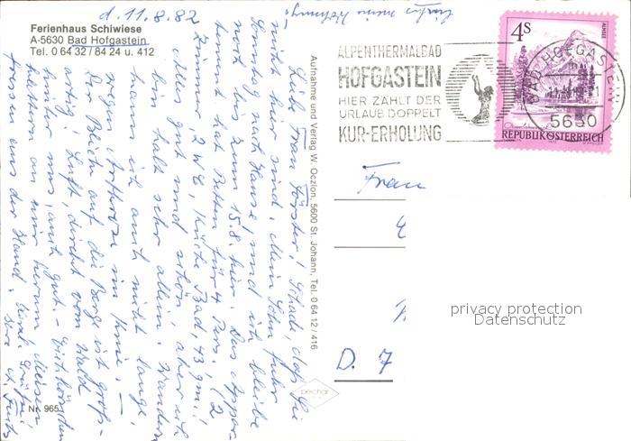 72413433 alte Postkarte Bad Hofgastein Ferienhaus Schiwiese postalisch gelaufen Erhaltung siehe scans KatCode: 11390322050402