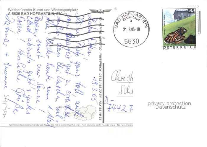 72303580 alte Postkarte Bad Hofgastein Fliegeraufnahme postalisch gelaufen Erhaltung siehe scans KatCode: 11390322050402