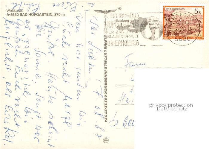 73521464 alte Postkarte Bad Hofgastein Fliegeraufnahme postalisch gelaufen Erhaltung siehe scans [WerneD78] KatCode: 11390322050402