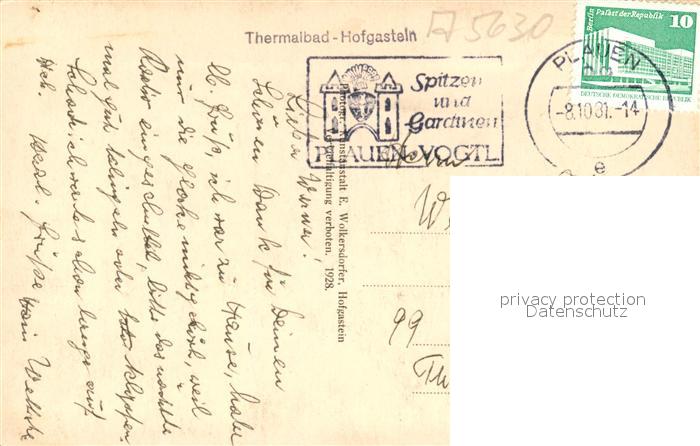 43261924 alte Postkarte Bad Hofgastein Fliegeraufnahme Thermalbad postalisch gelaufen Erhaltung siehe scans [LiesaD40] KatCode: 11390322050402