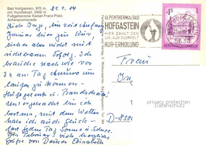 72901793 alte Postkarte Bad Hofgastein Fussgaengerzone Kaiser Franz Platz Achenpromenade postalisch gelaufen Erhaltung siehe scans [AndreD76] KatCode: 11390322050402