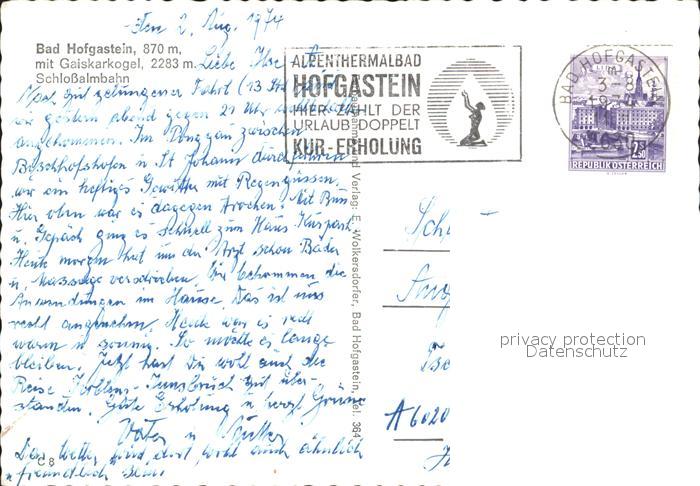 72302568 alte Postkarte Bad Hofgastein Gaiskarkogel Schlossalmbahn postalisch gelaufen Erhaltung siehe scans KatCode: 11390322050402