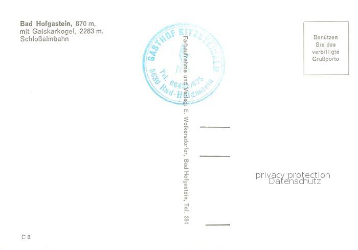 73239067 Bad Hofgastein Gaiskarkogel Schlossalmbahn postalisch nicht gelaufen Erhaltung siehe scans [NatalD47] KatCode: 11390322050402