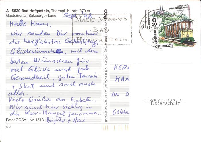 72500448 alte Postkarte Bad Hofgastein Gasteinertal postalisch gelaufen Erhaltung siehe scans KatCode: 11390322050402
