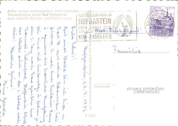 72285437 alte Postkarte Bad Hofgastein Graukogel Feuersang postalisch gelaufen Erhaltung siehe scans KatCode: 11390322050402