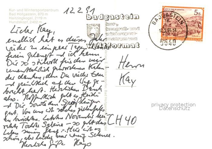 73162122 alte Postkarte Bad Hofgastein Haitzinkogel Hundskopf postalisch gelaufen Erhaltung siehe scans [LiesaD40] KatCode: 11390322050402