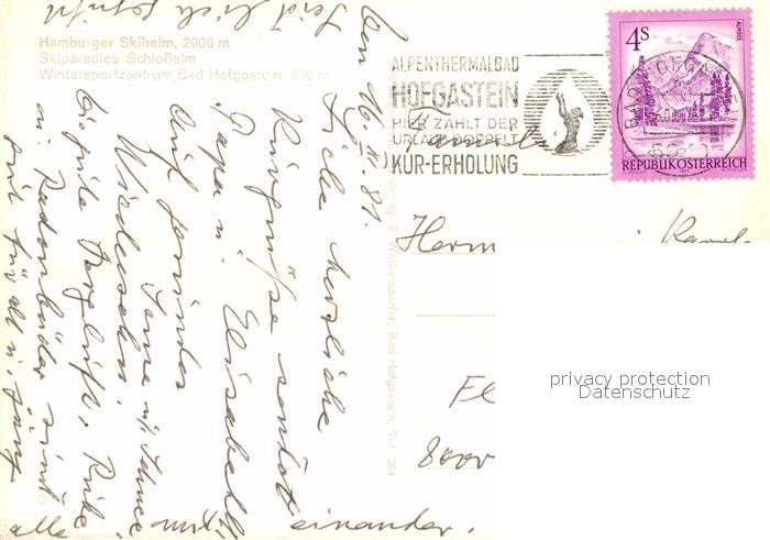 72928968 alte Postkarte Bad Hofgastein Hamburger Skiheim Skiparadies Schlossalm Alpen postalisch gelaufen Erhaltung siehe scans [FriedD77] KatCode: 11390322050402