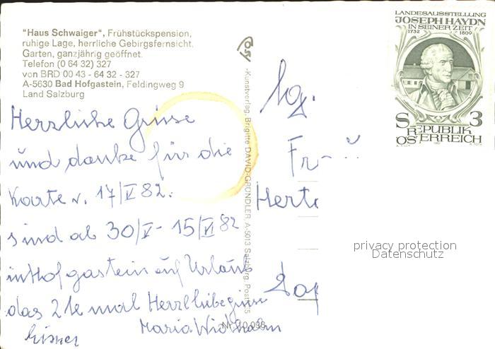 72064083 alte Postkarte Bad Hofgastein Haus Schwaiger postalisch gelaufen Erhaltung siehe scans KatCode: 11390322050402